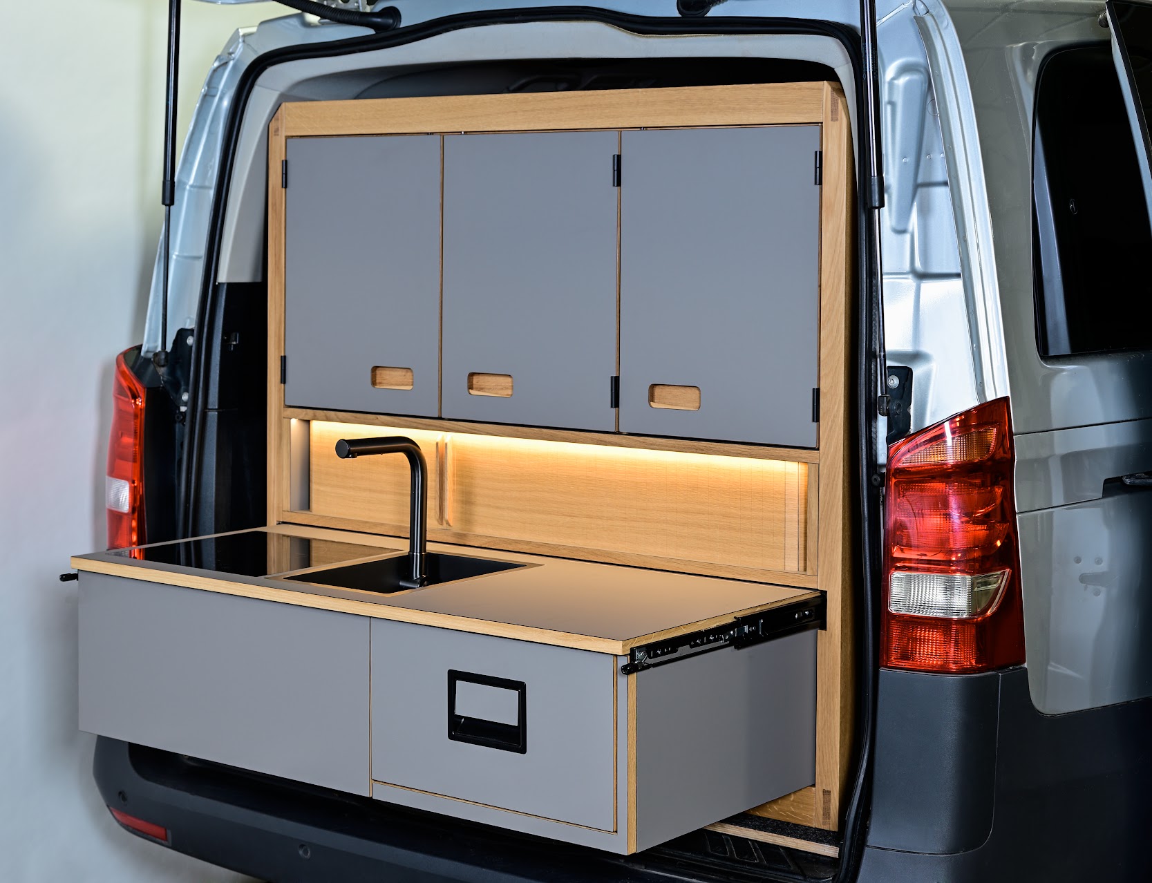 Nach dem Abitur habe ich mich bewusst für eine Ausbildung zum Schreiner entschieden. 2022 konnte ich sie als Innungsbester abschließen. Nach einem Gesellenjahr folgte 2024 der Meistertitel. Mein Meisterstück, ein modularer Camperausbau mit durchdachtem Stauraum- und Nutzungskonzept, wurde in der Fachzeitschrift BM online vorgestellt – ein Projekt, das zeigt, wie sich Funktionalität und Gestaltung auf engem Raum ideal verbinden lassen.